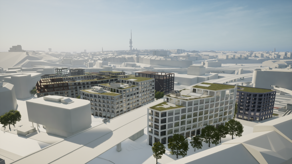 Porota i investor tak mohli mezi návrhy přepínat a porovnávat je v jednotném modelu. „Možnost přepínat mezi návrhy v jednom prostředí nám umožnila skutečně pochopit jejich rozdíly a kvality v reálném urbanistickém kontextu,“ shrnuje zkušenost Penta Real Estate. Model navíc nezůstal jen soutěžním nástrojem – investor ho využívá i nadále pro interní diskuze a ladění finální podoby projektu.