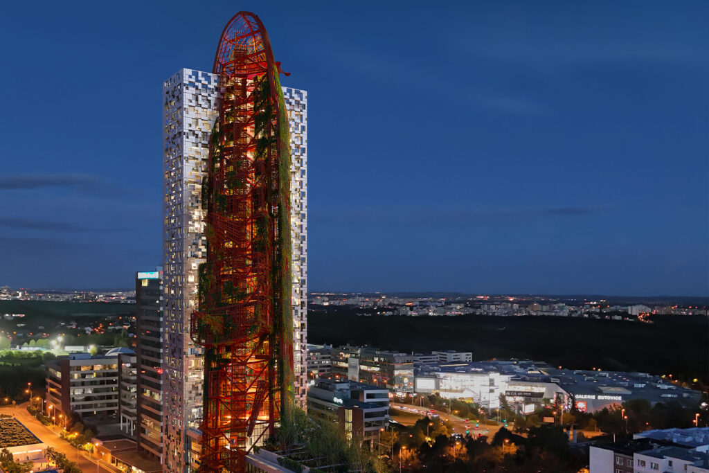 Projekt Top Tower společnosti Trigema, navržený architektem Tomášem Císařem a umělcem Davidem Černým, má v pražských Nových Butovicích vyrůst jako nejvyšší budova v Česku. Mrakodrap o výšce 125 metrů doplní ocelová konstrukce ve tvaru vraku lodi a nabídne byty, kanceláře, obchody i kulturní centrum. Praha schválila změnu územního plánu a investor přispěje městu téměř 76 milionů korun. Stavba však vyvolala kritiku odborníků, podle nichž projekt nerespektuje urbanistické hodnoty čtvrti. David Černý i Trigema nesouhlasí – podle nich jde o odvážný architektonický počin, který přinese městu novou dominantu a efektivnější využití prostoru.
